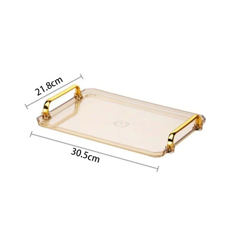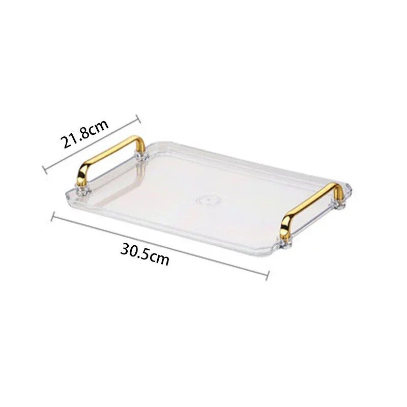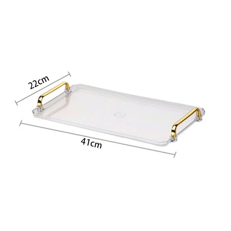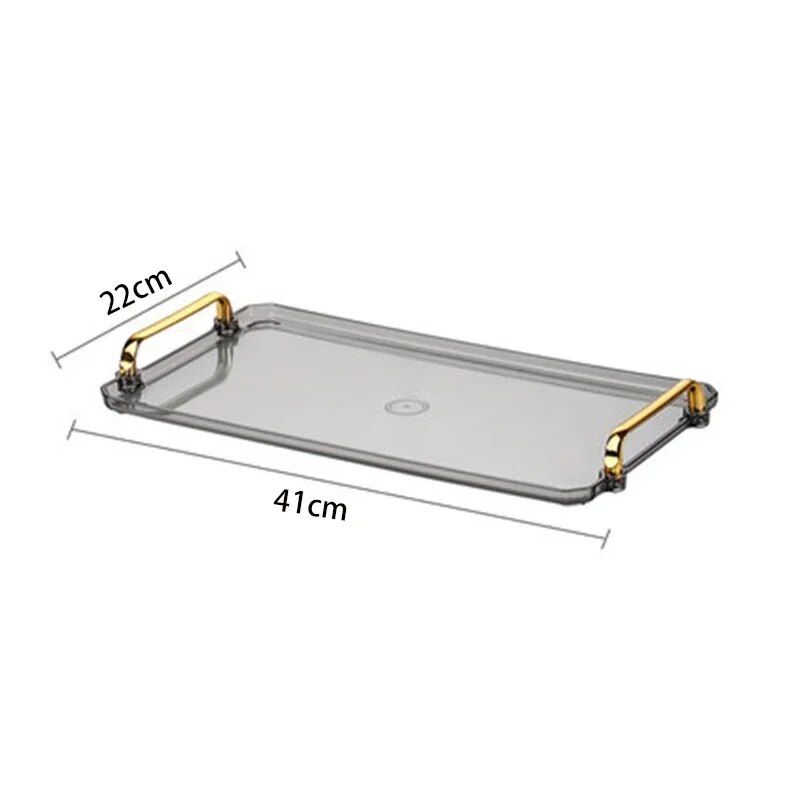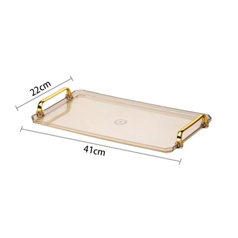 Introducing our stunning Acrylic Decorative Tray, a blend of modern sophistication and practicality. This tray is more than just a household item; it’s a statement of light luxury and modern style. Designed by professional designers, its clear, amber, or light gray color options and gold-plated accents make it an ideal match for any home decor. Perfect for personal use or as a thoughtful gift, this tray elevates the ambiance of any room.